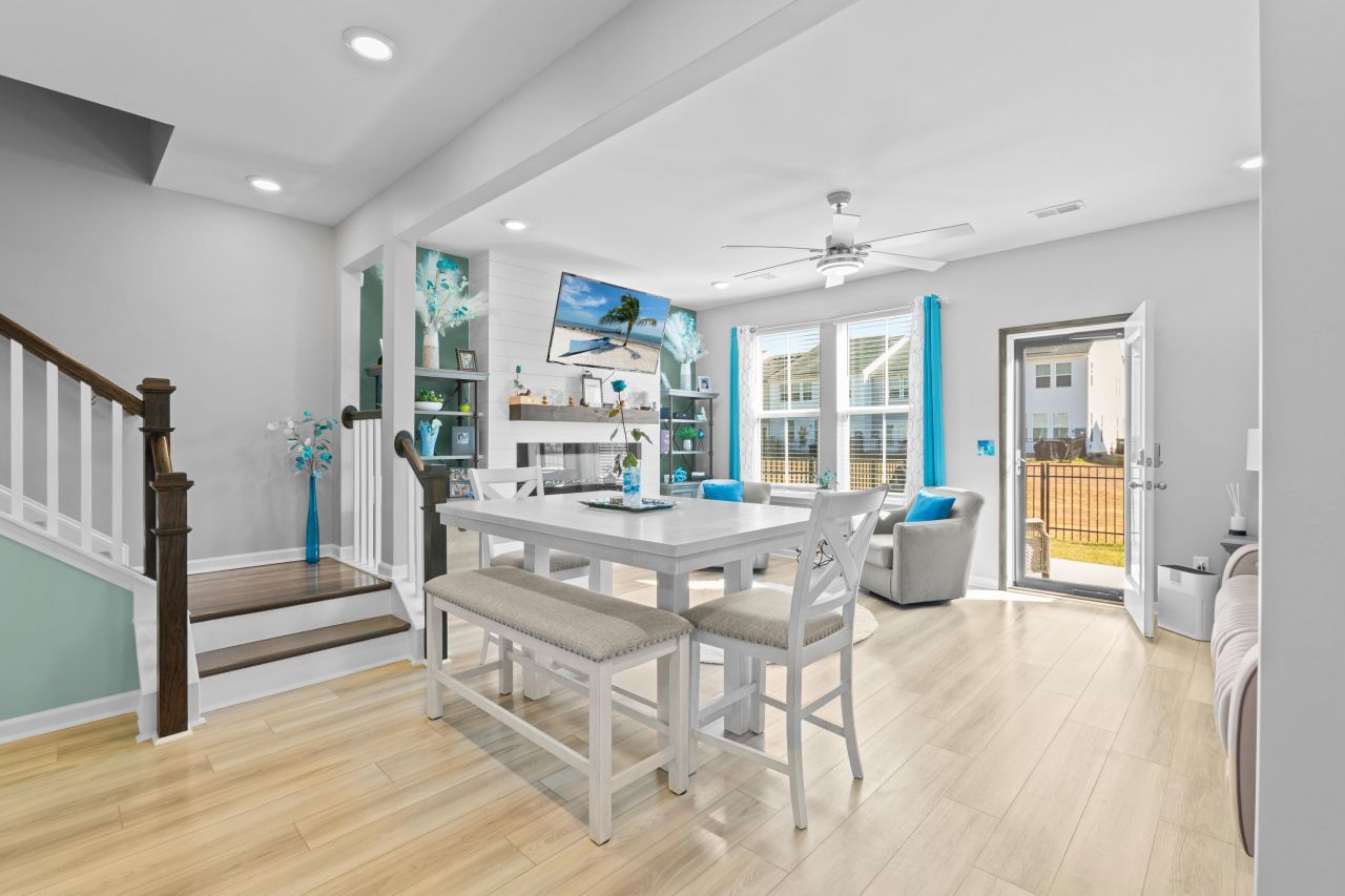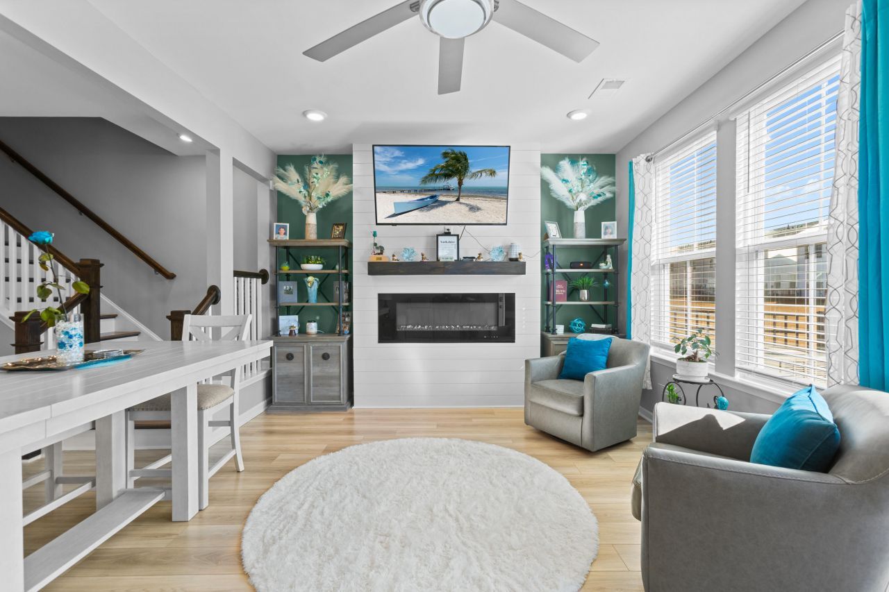 Welcome to this charming 2-story home in the Boykin Run/Foxbank community, offering 1,600 sq. ft. of comfortable living with 3 bedrooms and 2.5 bathrooms. Built in 2023, this home features several remarkable updates, including an accent wall with shiplap and an electric fireplace, a shiplapped kitchen island, and ceiling fans with remotes added to every room for enhanced comfort.The exterior is just as impressive, with updated front-yard landscaping, a fenced backyard, a 1010 concrete patio perfect for outdoor enjoyment, and an epoxy-coated garage floor that adds durability and style. Located in desirable Berkeley County and zoned for Foxbank Elementary, Berkeley Middle, and Berkeley High, this home blends modern touches with everyday convenience.